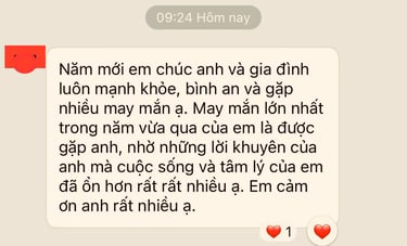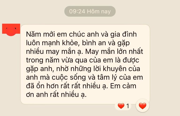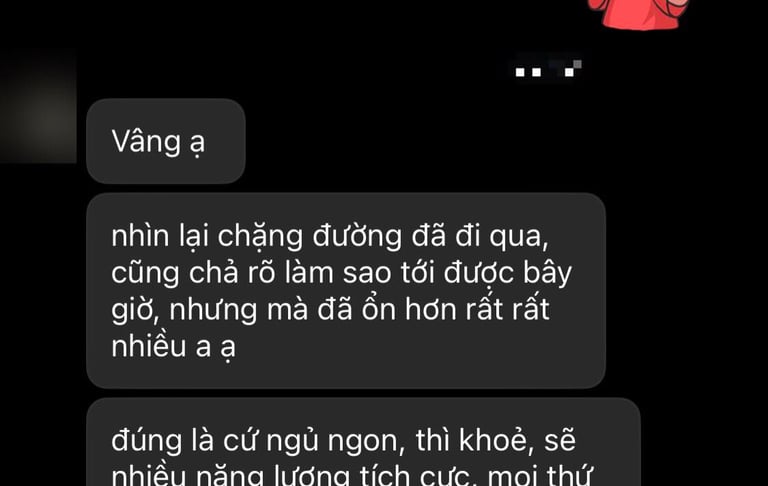 Thời gian để thấy kết quả có thể khác nhau tùy thuộc vào từng cá nhân và vấn đề mà họ đang đối mặt. Một số khách hàng có thể cảm thấy cải thiện ngay sau vài buổi, trong khi người khác có thể cần nhiều thời gian hơn để xử lý các vấn đề phức tạp hơn. Sự cam kết và nỗ lực của bạn chắc chắn sẽ giúp rút ngắn tiến trình.